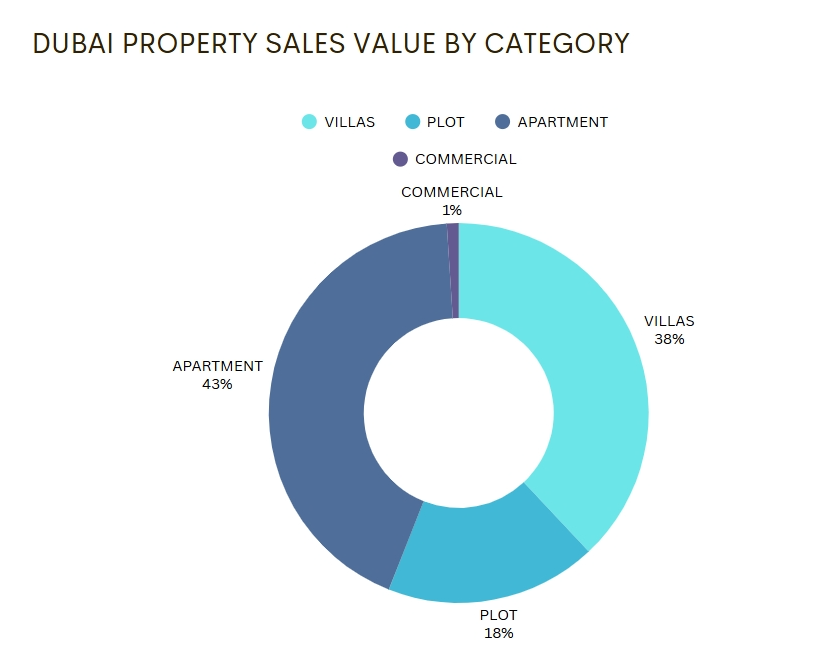 • Commercial Spaces & Land Plots: Together up 54 % and 126 %, bringing in AED 12 billion.